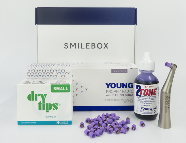 Heidelberg, 12. Mai 2020 – Young Innovations und NSK präsentieren mit der SMILEBOX ein komplettes Set für die professionelle Zahnreinigung. Die Produkte sind perfekt aufeinander abgestimmt und ergänzen sich ideal. Jede Box enthält ein Polier-Winkelstück, Prophy-Cups, Polierpaste, Anfärbelösung und Parotispflaster.