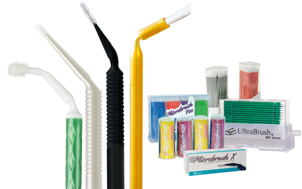 Zum Auftragen von Zement, Binde- und Ätzmittel, Calciumhydroxidpaste, Versiegelung und Disclosing Solution geeignet ist der Microbrush® Applikator. Sein fester Bürstenkopf verhindert ein Vertropfen der Substanzen. Erhältlich sind die Größen regulär, fein und superfein in sieben Farben für unterschiedliche oder mehrstufige Behandlungen.
